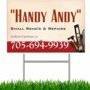 Doors , Screen Doors , Faucets , Painting , Start selling online and grow your business with a powerful eCommerce platform. , Windows , trim , Hardwood Floors , Lockstone Walkways , Use the integrated marketing and customer management tools to help drive sales and conversions , Fixer , Suspended Ceilings , Light Fixtures , Take bookings for your services and make it easy for customers to pay you online , Create a blog with built-in features to grow your reach and build your brand , Get professional features for your website , Base Boards , drywall repairs , Online Scheduling Software , Sell your products with build-in ecommerce features , When you make your own website with Wix, you get reliable, scalable and free web hosting. , Should I create a website and host it for free? , Online Shop , Make your own website with built-in tools to grow your small business online , Laminate Floors , Solar Pool Heating , Handy Andy Small Renos & Repairs