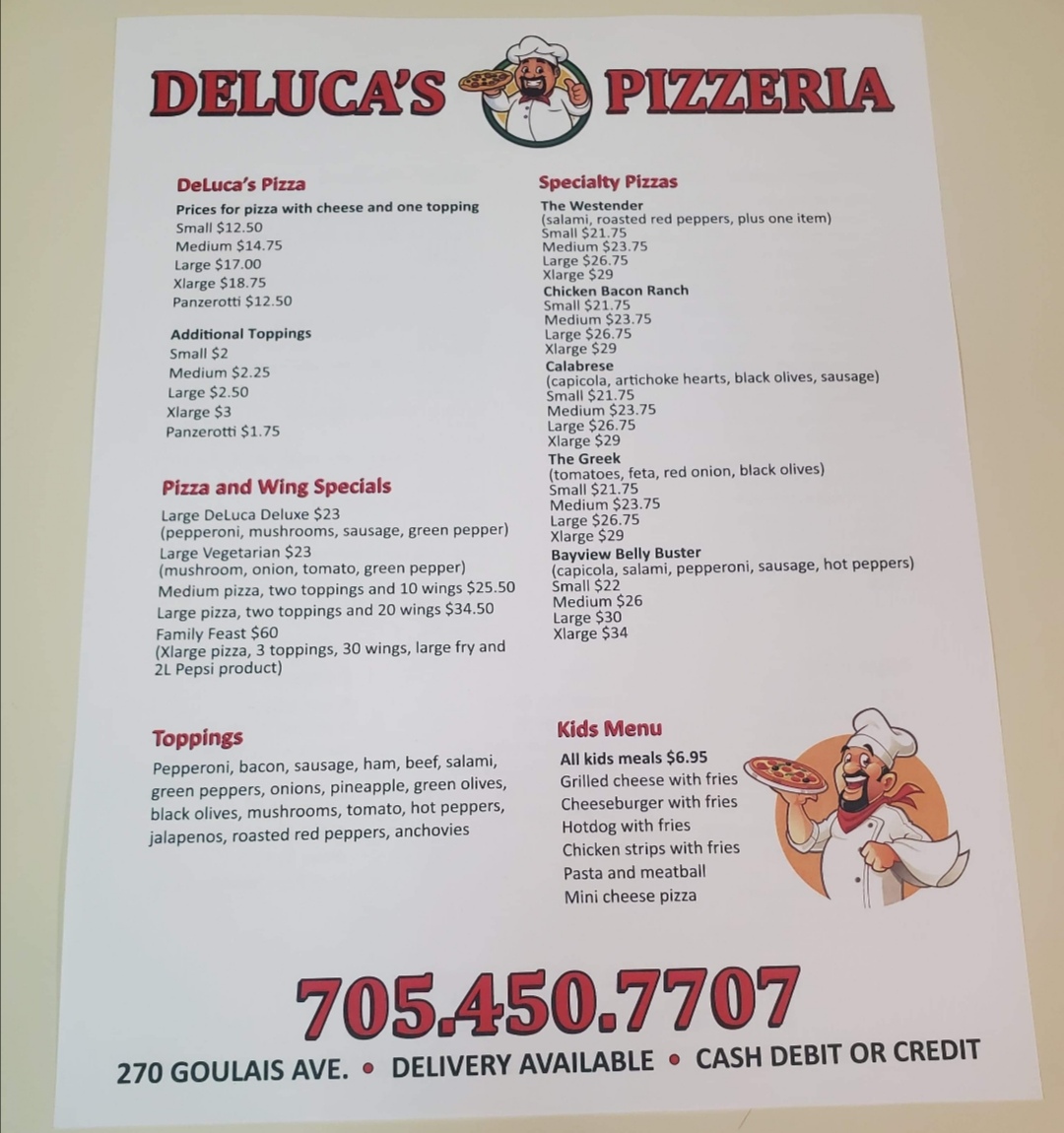 Deluca'S Pizza from Sault Ste Marie, ON. Company specialized in: Restaurants.