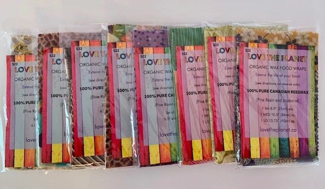 Love The Planet sells colorful organic reusable beeswax wraps and baggies.