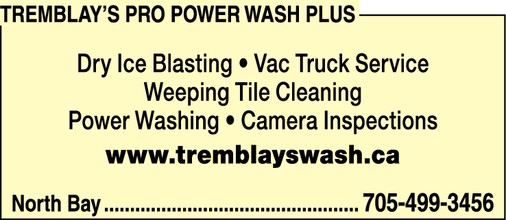 For further information about our services and to book an appointment, visit our website at www.tremblayswash.ca or give us a call at 705 499-3456. Trust Tremblay's Pro Power Wash Plus for all your weeping tile cleaning and repair needs, excavation services, and camera inspections in North Bay.