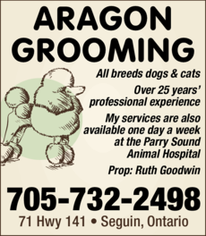 Names and Numbers Verified Pet GroomingAragon Grooming is a professional pet grooming business located in Seguin, Ontario. With over 25 years of experience, we are dedicated to providing top-quality grooming services for all breeds of dogs and cats. Our highly skilled and knowledgeable staff ensures that your furry c…