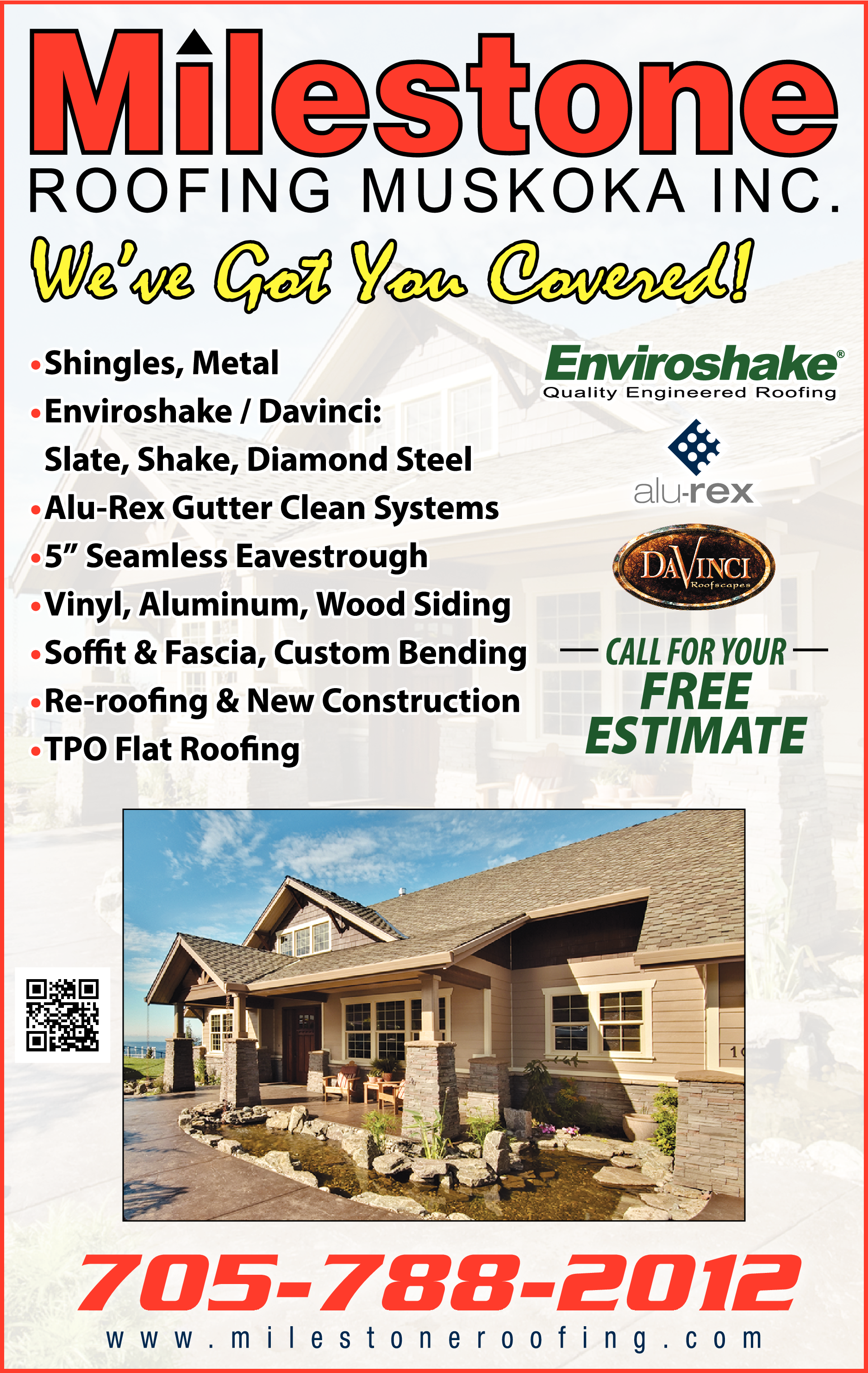 Names and Numbers Verified Roofing ContractorsMilestone Roofing Muskoka Inc. Serving Huntsville, Muskoka & Surrounding areas for over 15 years. We've Been Building For Over 15 Years Asphalt, Metal, Shakes, Rubberized and more! We have the knowledge, the skills and the products to complement your style and budget! Ge…