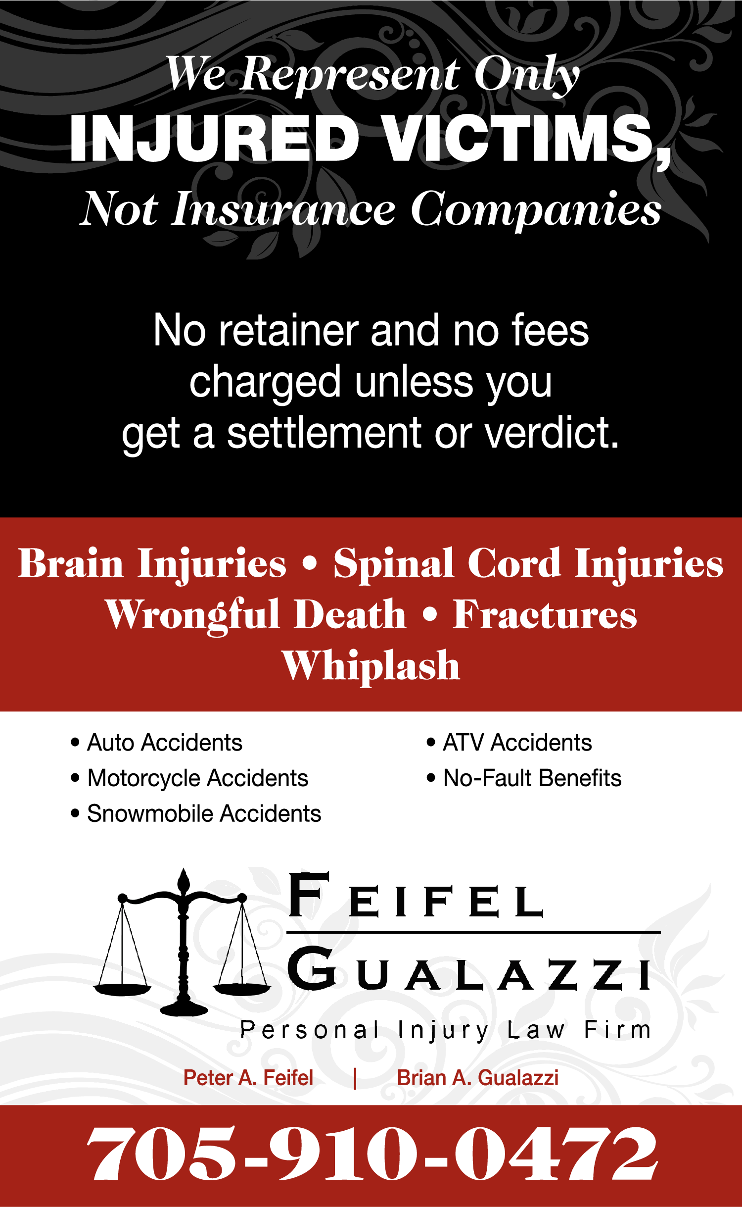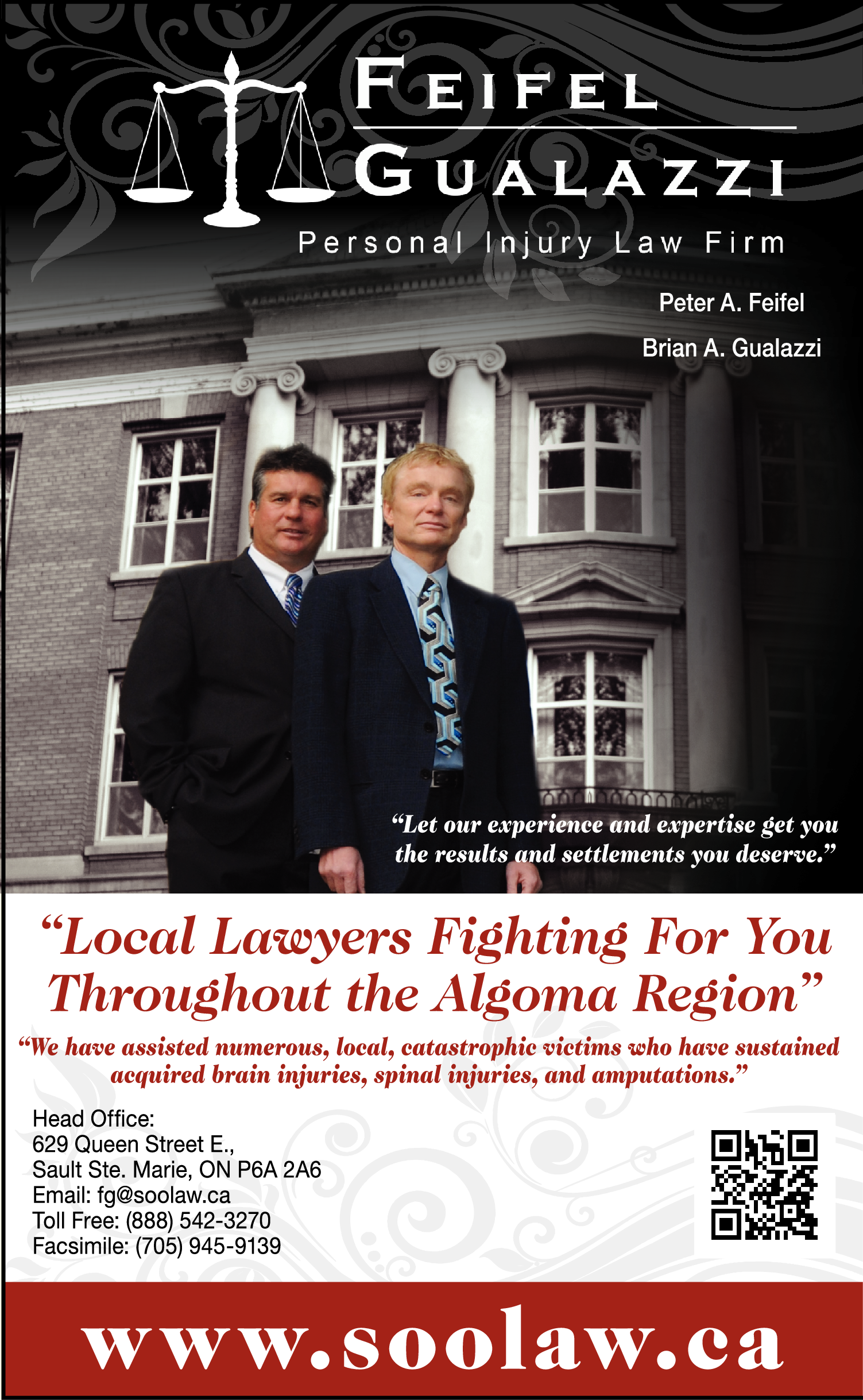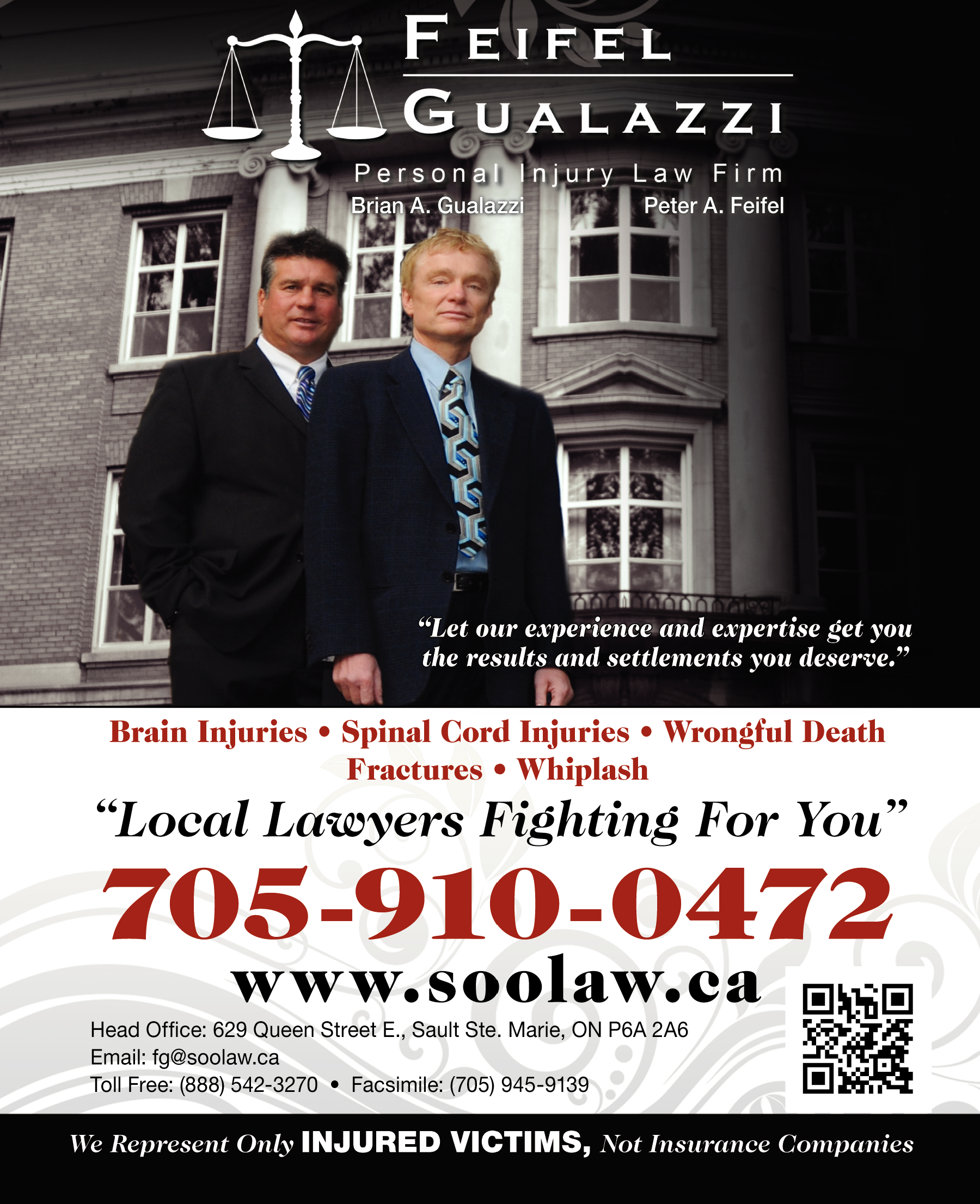 LawyersDo you need a personal injury lawyer in Sault Ste. Marie to handle your no-fault automobile benefits or whiplash injury claim? Call Feifel Broadbent Gualazzi.
