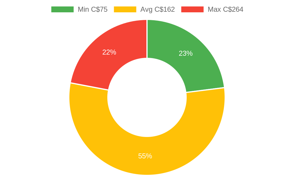 According to statcan.gc.ca the minimum veterinarians costs for homeowners in Sault Ste Marie, ON is C$75, the average is C$162 and the maximum is C$264.