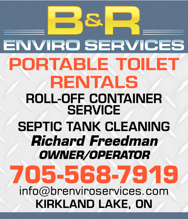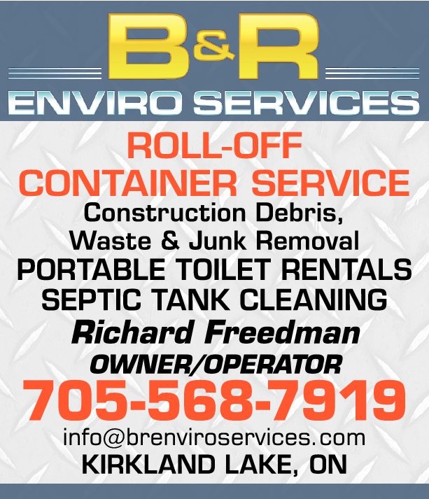 Names and Numbers Verified Contractors Equipment Rental Recycling Services Rubbish Removal Septic System ServicesRent Roll Off Bins, Portable Toilets, and More from Kirkland Lake's B&R Enviro Services Inc. Since 2007, B&R Enviro Services Inc. has been providing a variety of products and services from roll off bins or the rental of portable toilets to septic pumping for Kirkland Lake reside…
