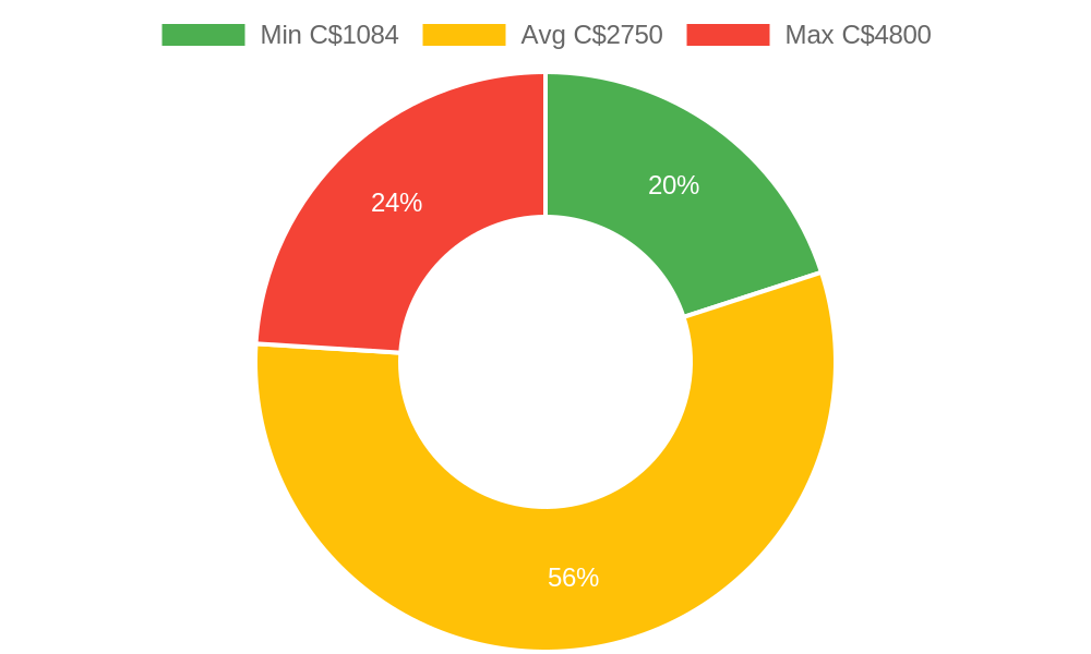 According to statcan.gc.ca the minimum general contractors costs for homeowners in Wawa, ON is C$1084, the average is C$2750 and the maximum is C$4800.